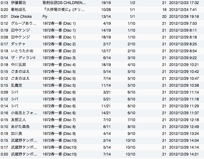 20秒以上の楽曲は再生回数が増え、最後に再生した日も更新されています。