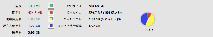 であればと早速8GBのメモリを発注し、先ほど届いたので挿入し状況を見ているのですが動作は快適です。また、アクティビティモニタでみるとスワップ使用領域は0バイトのままです。