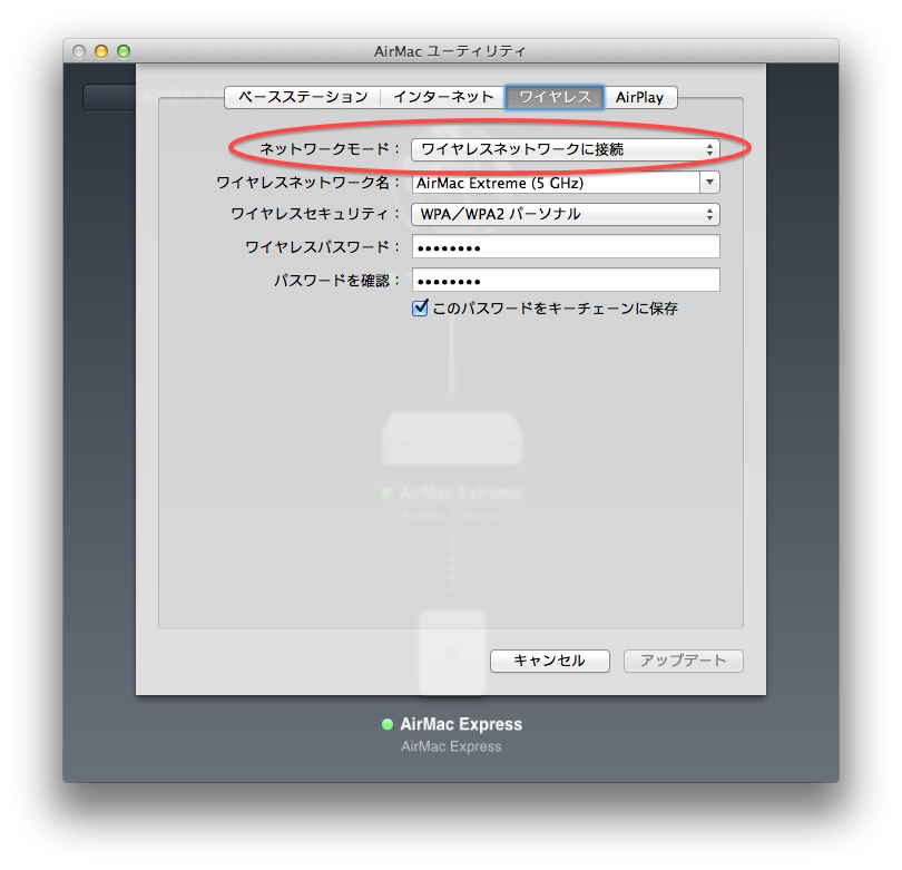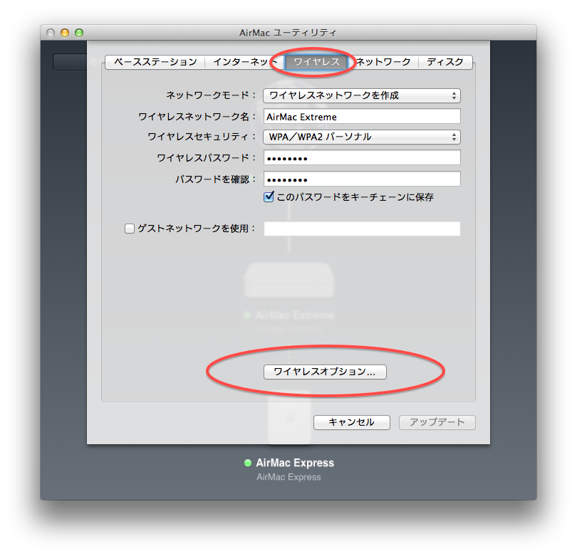 もちろん、MacやWindowsのAirMacユーティリティでも変更出来ます。