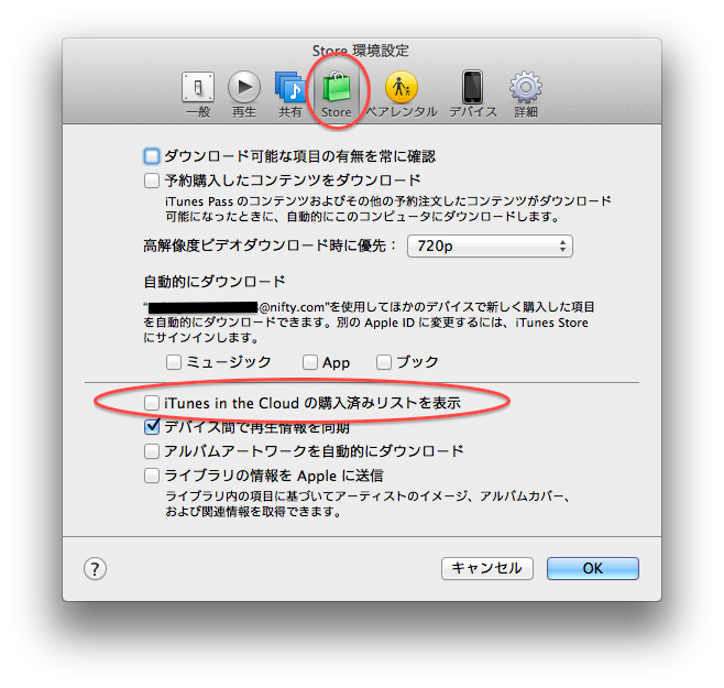 環境設定「iTunes in the Cloud の購入済みリストを表示」が消える