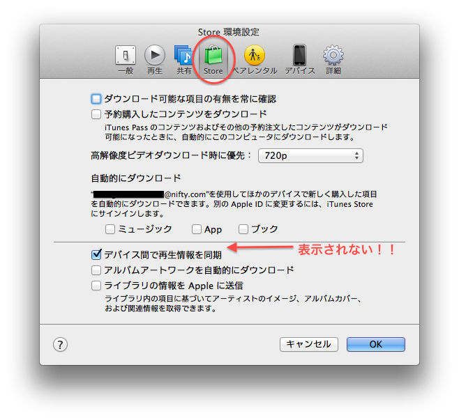 環境設定「iTunes in the Cloud の購入済みリストを表示」が消える
