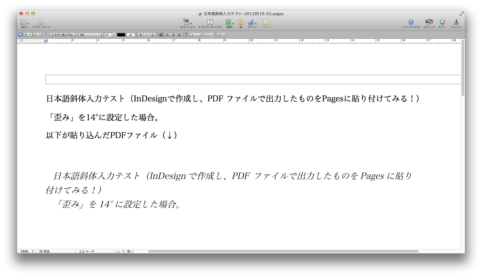 ということはpagesではイタリックにすることはできないということですか。