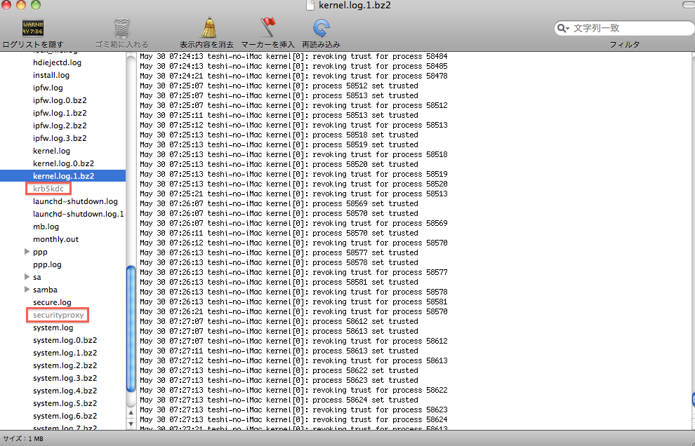 ないか?とネットで調べたところ、コンソールのログの「kernel.log」