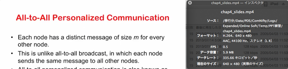 PowerPointから動画として保存した*.movファイルはQuickTimeで開く事は出来ますがiTunesのライブラリに追加する事は出来ませんでした。音楽としても動画としても認識されません。