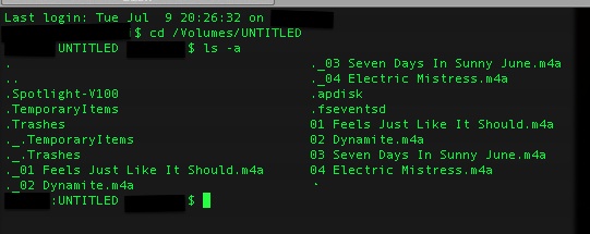 普段Mac内の音楽ファイルをSDに保存してカーナビで再生しているのですが、それぞれの曲名の頭に「._」から始まるファイルが表示され、非常に邪魔です。