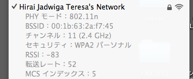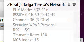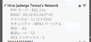Transmit Rate 130 ですが、第1世代のAirMac Extreme ならここまでぐらいなのかもしれません(上の、300 Mbps も簡単に出るという私のコメントは間違いの可能性大)。