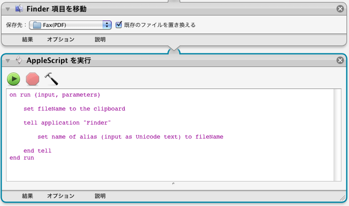 更にクリップボードから受け渡された文字列でリネームにするスクリプトをつくりました。