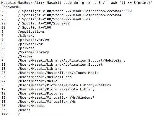 あと、その他が147GBもあることを考えると他にも原因があるかもしれません。コマンドの実行には時間がかかるのですべての出力が終わる(プロンプトが出て次のコマンドがうてる状態)まで少し待ってみてください。