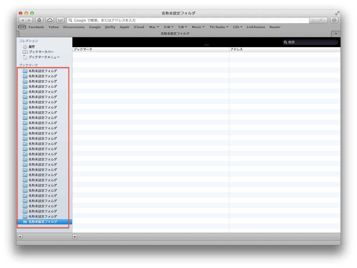 SafariのブックマークがiCloudでブックマークを同期した関係で、