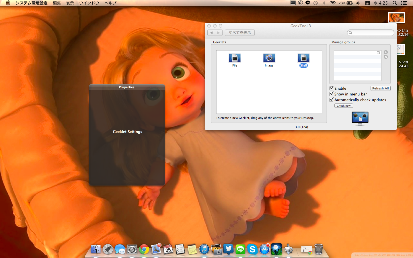 ユーザのユーザプロフィール: Hiro__S Hiro__S ユーザレベル: レベル 5 5,945 ポイント 2013/09/24 15:32 nattssumey への返信 現在のバージョンをアンインストールし、最新版 (v3.1.1) を導入してみてください。入手先は下記。Tynsoe projectshttp://projects.tynsoe.org/en/geektool/download.php 返信 リンク
