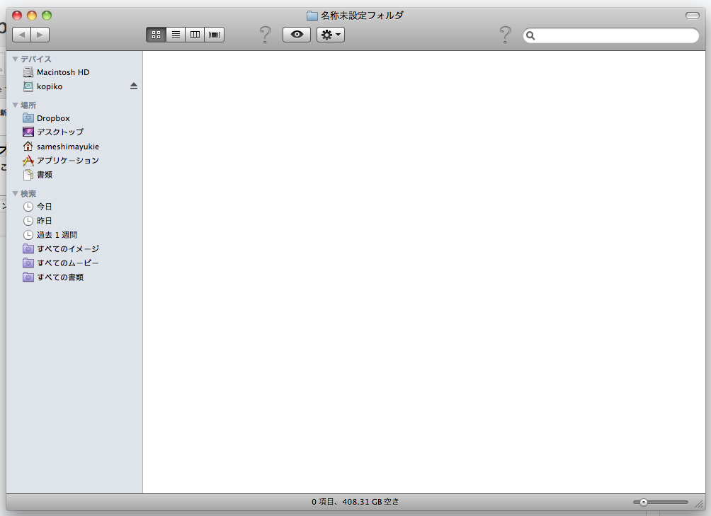 Finder のツールバーに登録したファイルやフォルダ等のオリジナルを消去するとこのようになります。「?」アイコンを右クリックし、「項目を取り除く」とツールバーから取り除かれます。
