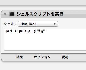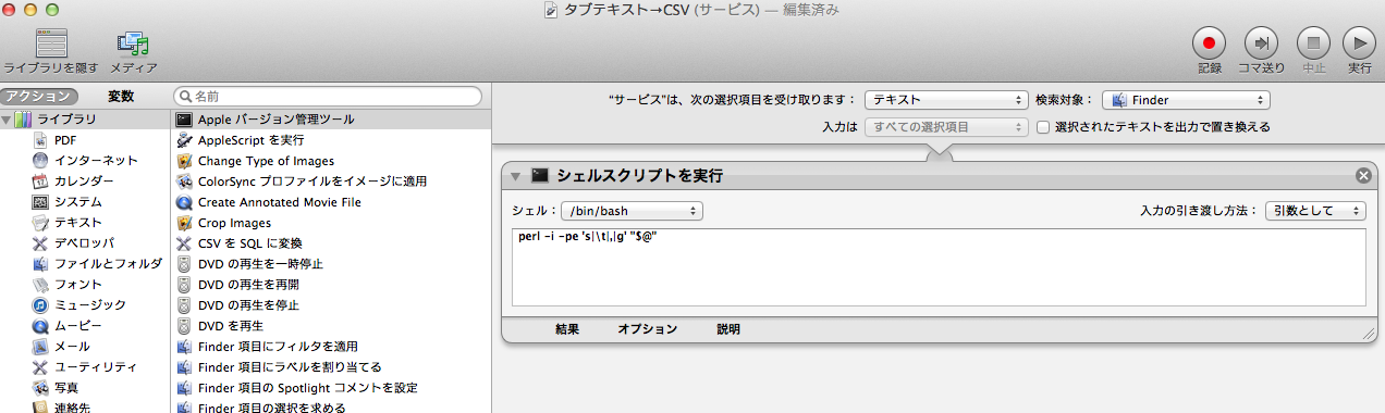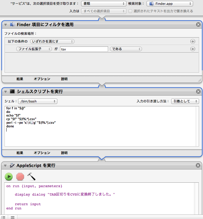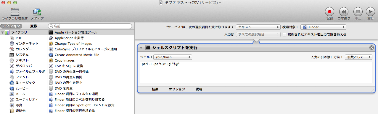 macのAutomatorでタブ区切りのテキストファイルをCSVファイルに変換したいです