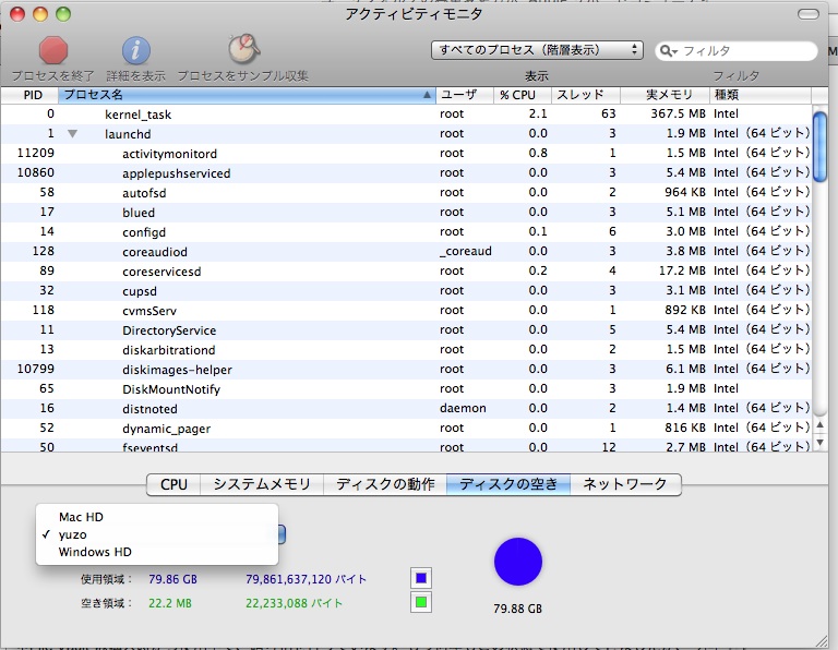 質問:最近、種々の操作中に「ユーザフォルダの容量が不足して操作ができません」という表示がでて操作がストップしてしまいます。特にMailのメールボックス操作や、Officeのprogram updateなどがこの表示が出て出来ません。HDの容量自体は半分以上空きで余っていますが、Activity Monitorで見てみると、確かに私のユーザホルダが80GB割り当てられており、99%以上使用されており空き容量が殆どなくなっています。勿論、不要なファイルが有れば、できるだけ消去するという方法も有るのですが、質問は、ユーザホルダの割り当てはデフォルトで80Gbと決まっているのでしょうか? HD容量は余っているので、自分のユーザフォルダ容量をもっと
