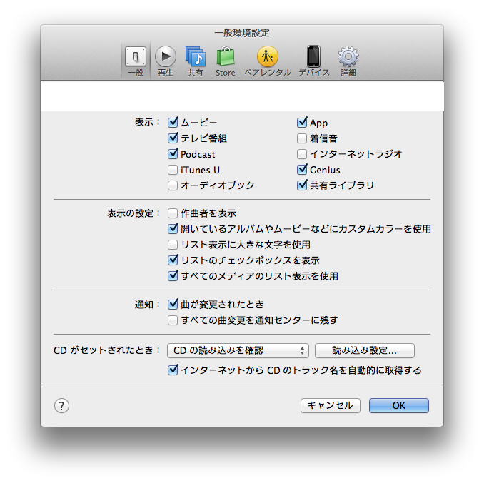 itunesの一般環境設定>一般で、「ブック」が表示されない