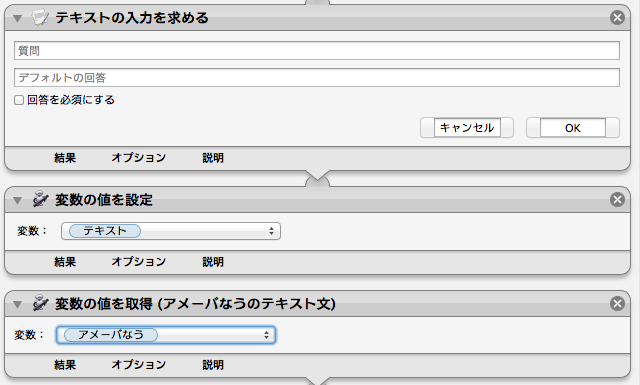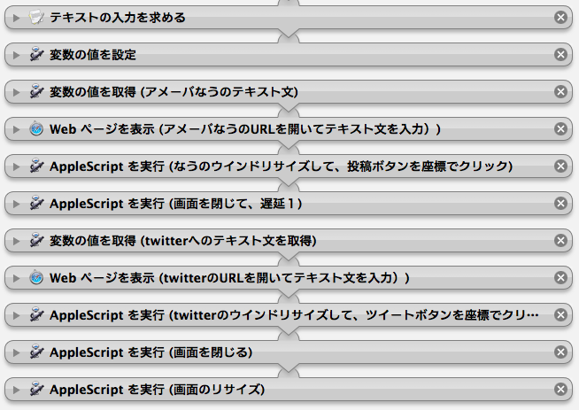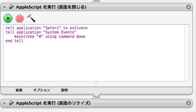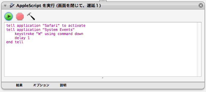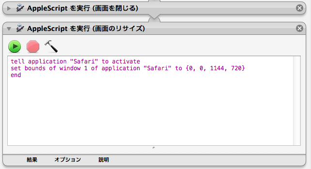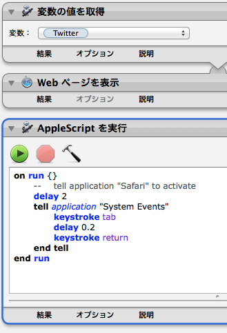 MavericksのAutomatorで"Applescriptを実行”アクションに以下をいれ