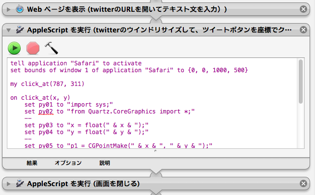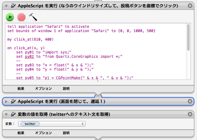 MavericksのAutomatorで”Applescriptを実行”で click at命令が実行不可に
