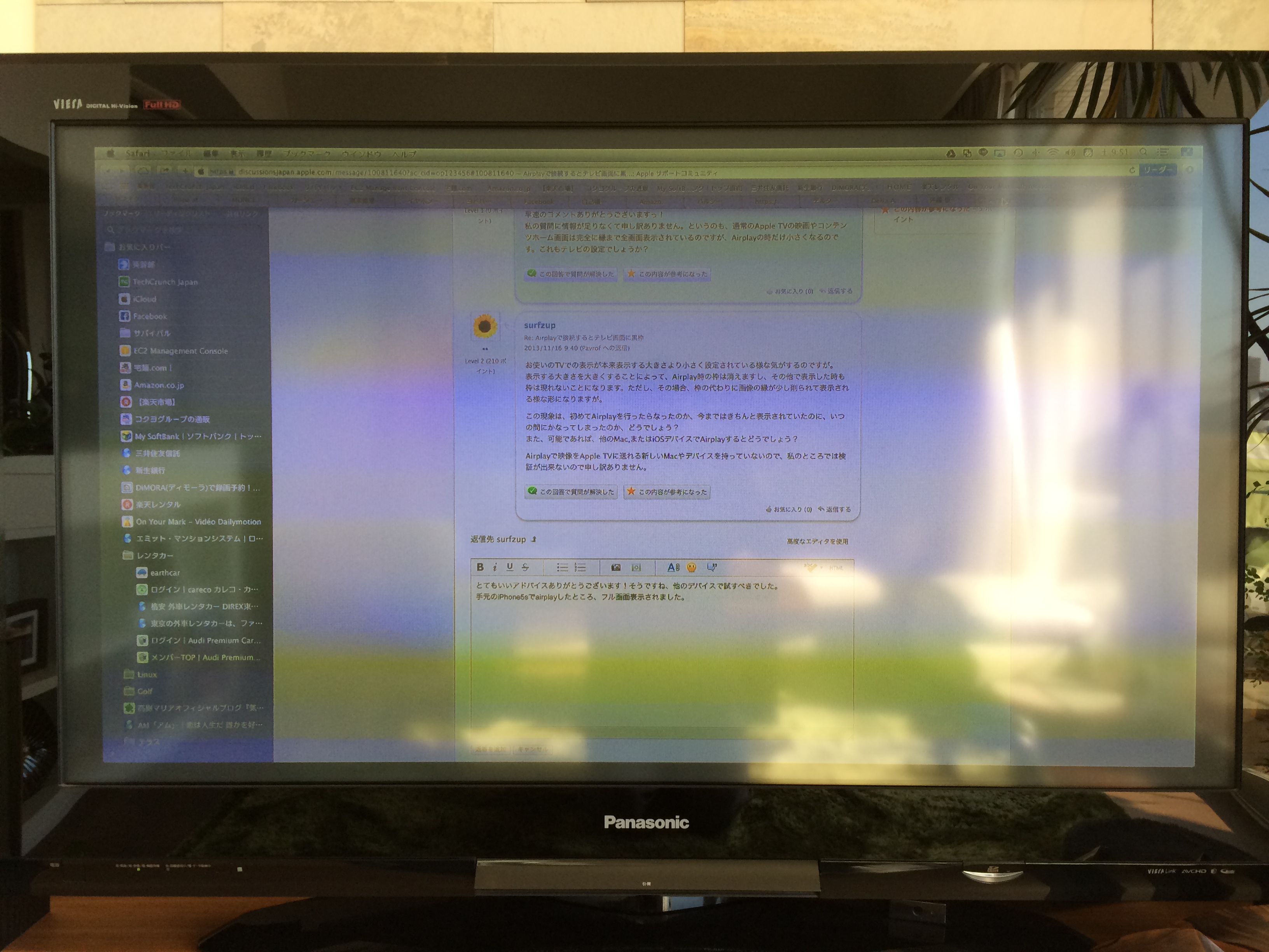 Mac MiniのAirplayでのみ、この現象が発生するようですので、テレビ側の問題ではなさそうですね。