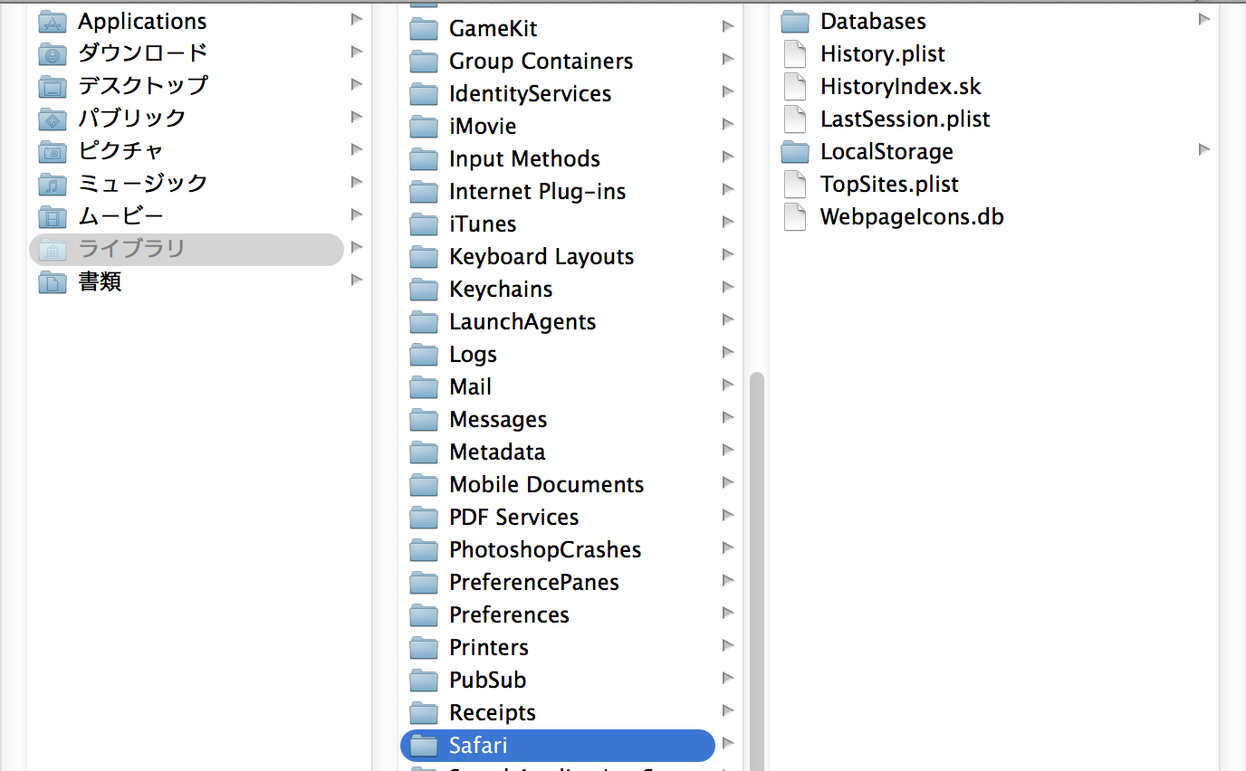 「option」キーを押しながら「ライブラリ」>「Safari」>