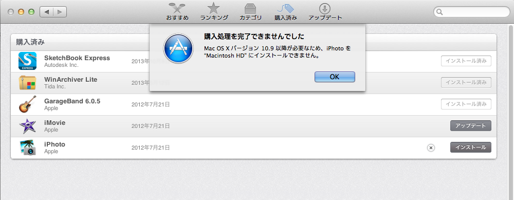 ただ、OS10.9をインストールしたので、最新のiPhotoを入れようかと思っております。