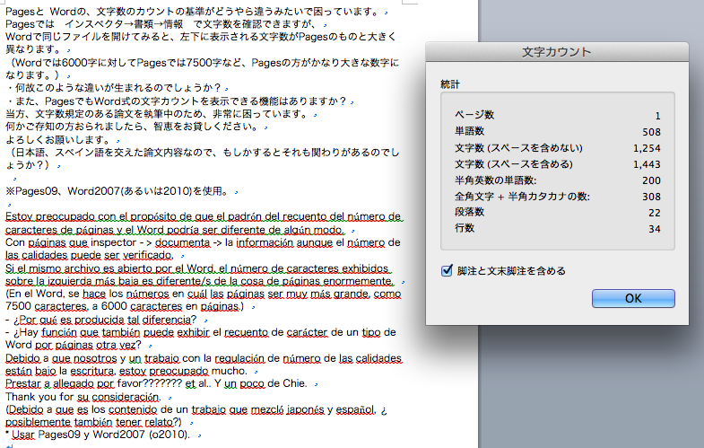 Pagesと Wordの、文字数のカウントの基準がどうやら違うみたいで困っています。