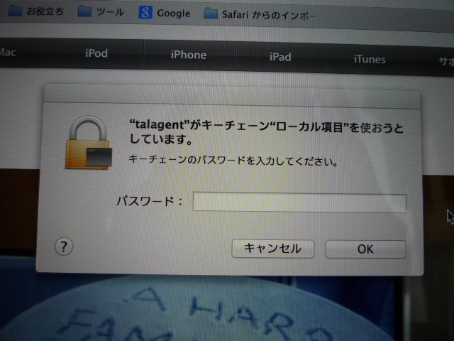 "talagent"がキーチェーン"ローカル項目"を使おうとしています…という小窓が出てきて消えません。