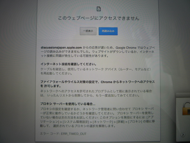 ブラウザ(GoogleChromeとSafari)もつながらなくなりました。(ネットにはつながっています)