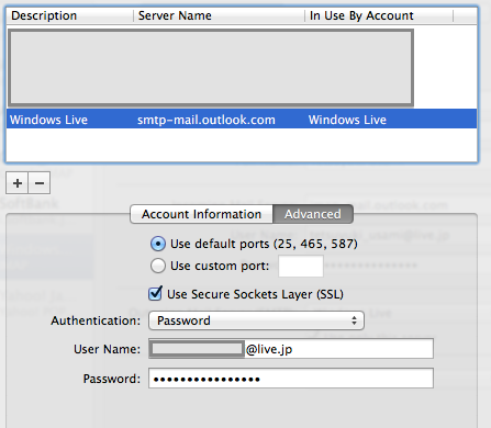 Windows live mailのアカウントをMac X Mavericksの標準メールソフトで使えるようにするには、設定をどうすればよいのか?
