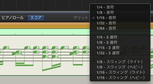 Garage band のピアノロールでのグリットライン