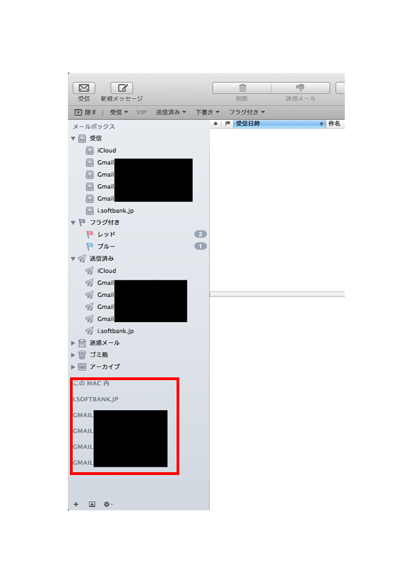 Mac Mailの左のインデックスに表示されている「このMAC内」と、それ以降の表示を消したいのですが、方法はありますでしょうか?