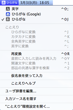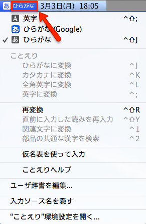 以前は、ひらがな(ATOK)、カタカナ(ATOK)、英字(ATOK)を使っていたのですが、OS X Mavericks (10.9)にアップグレード