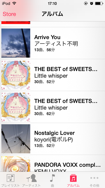 それが、iTunesでも、iPodtouchのミュージックアプリ内のアーティストでも