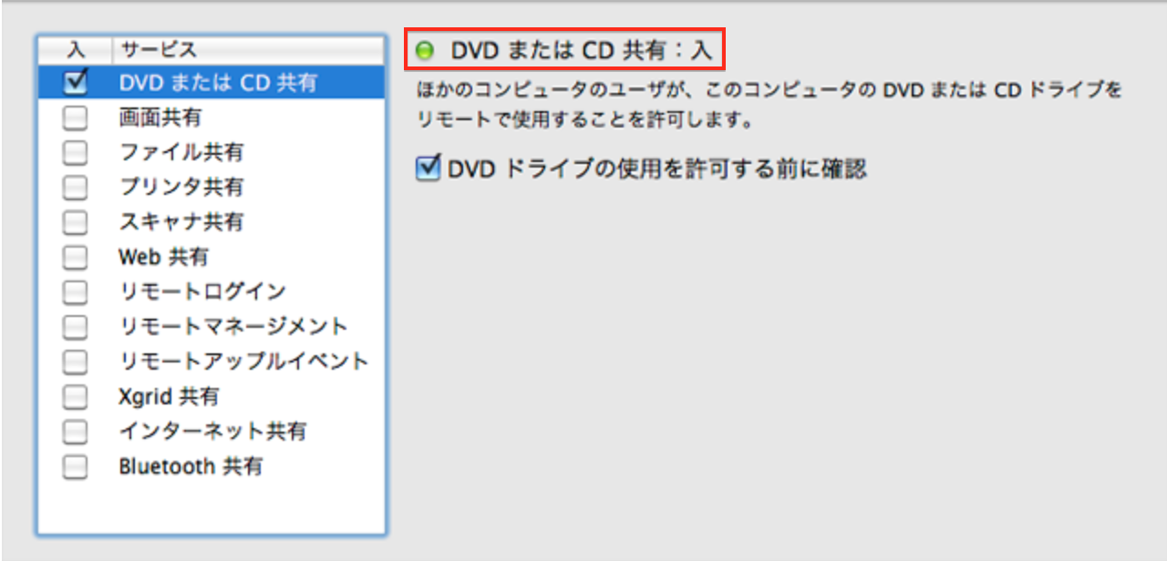 それだと、Mavericks でCD、DVD共有も使えないのかも。