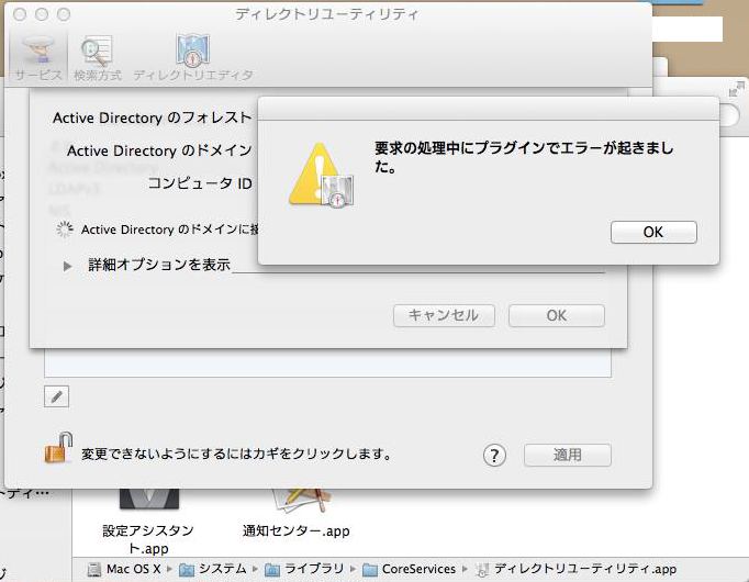 上記環境にて、ディレクトリユーティリティを利用してドメイン参加(バインド)を試みたところ、『要求の処理中にプラグインでエラーが起きました。』としてドメイン参加が出来ませんでした。2003モードでも同様です。また、Windows8からはドメイン参加ができました。