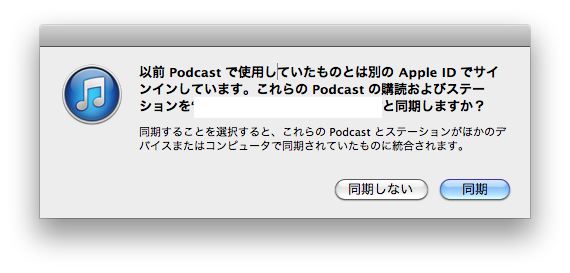 iTunes podcastで何度も「同期しますか?」と聞かれる