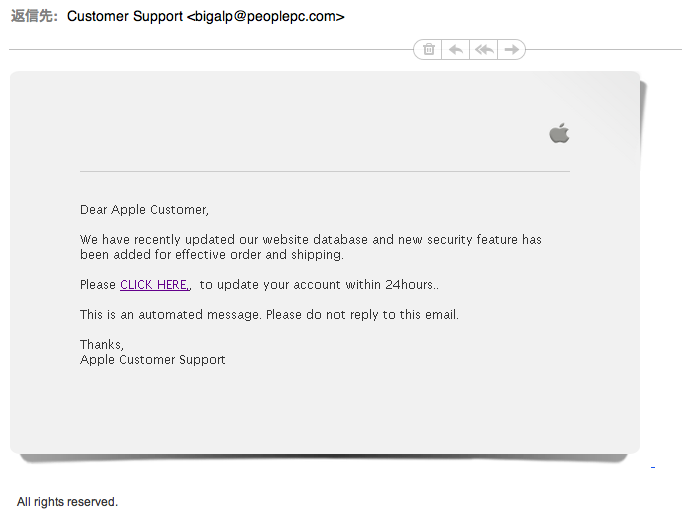 どうだろう。いちいちAppleに報告するより、無視するのがいいと思う。