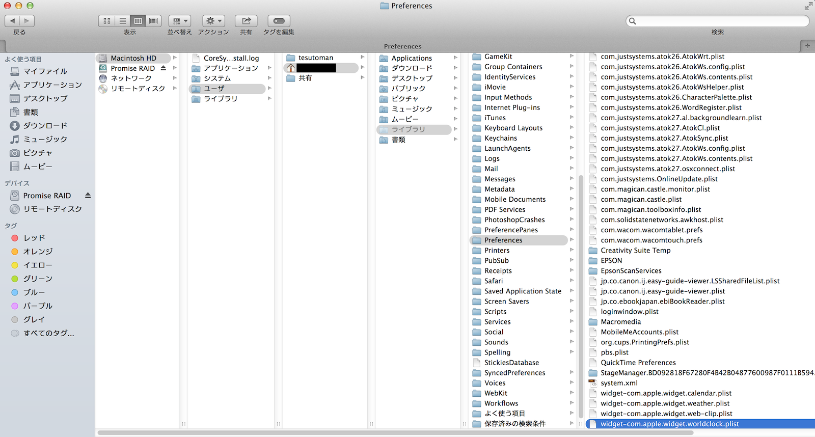 「widget-com.apple.widget.worldclock.plist」は、新たに不具合の無い状態の物が再作成されます。