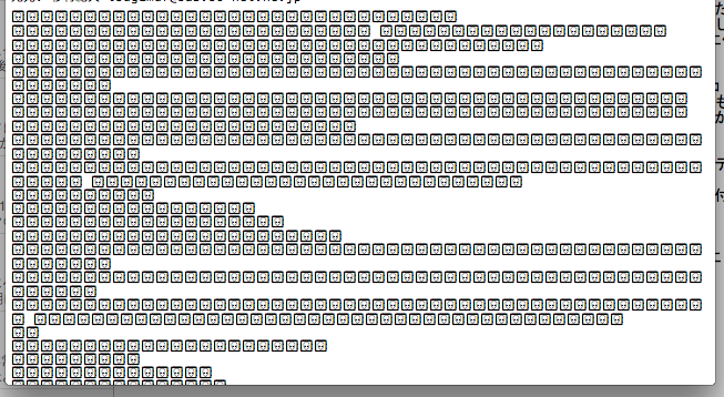 1)添付して頂いた画像は『エディター』のウィンドウを撮影したものでしょうか? TextEdit.appとは異なる様ですが、何か特別なエディタをお使いなのでしょうか? その場合、テキストファイルを開く際のエンコードの指定や表示するフォントの設定等は確認されていますでしょうか?