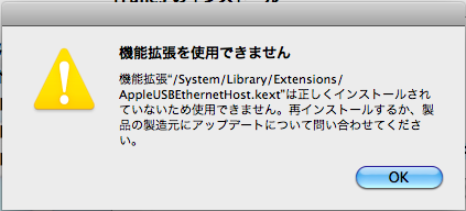iTunesの機能拡張を使用できないという警告であれば、"AppleUSBEthernetHost.kext"がどのような働きをするのか分かりませんが、私はiTunesを使っていないので(いつか使うかもしれないと思いアップデートしましたが)無視しておいてよいのでしょうか。