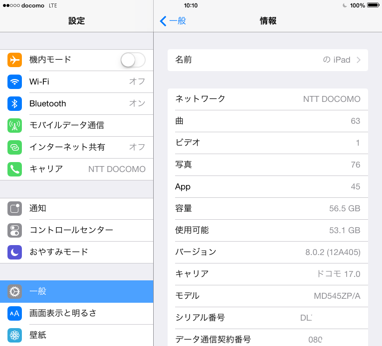 iPad mini (A1455) SIM Free iOS8.0でのdocomo MVNO LTE