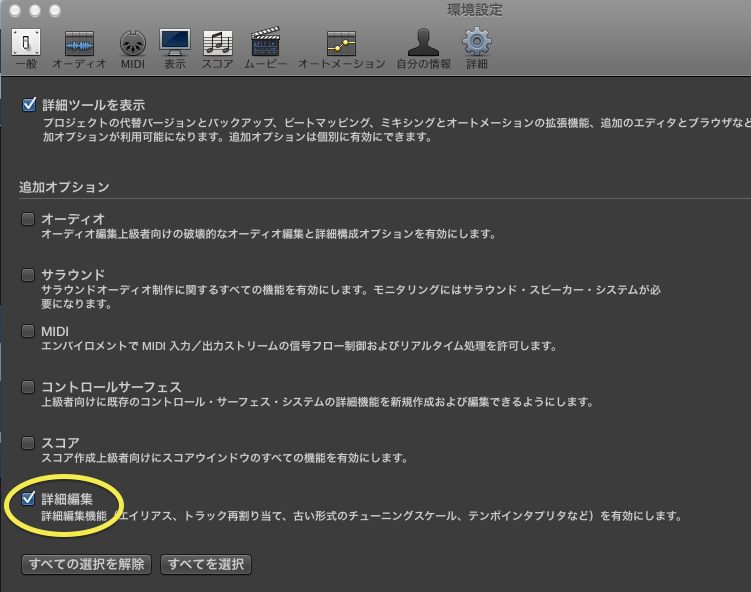 詳細ツールは、オーディオ、MIDI,スコアは常時ONにしておいたほうがいいですよ、