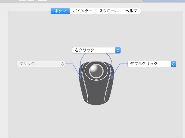 上記は僕が使っているトラックボールですが、SteerMouseの場合、割り当ててみたのですが
