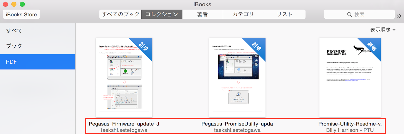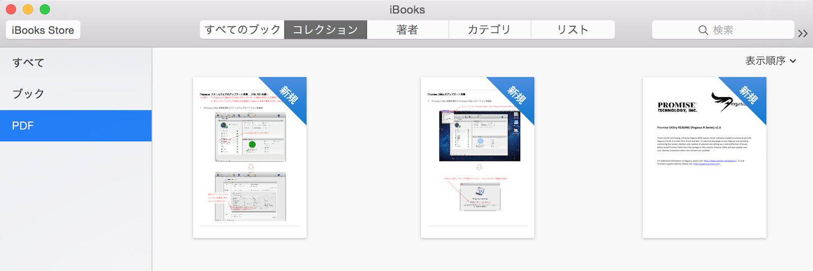 ibooksにpdfを取り込んだもののうち、右上が資格が並んだ本棚の状態では表紙が表示されるのですが、