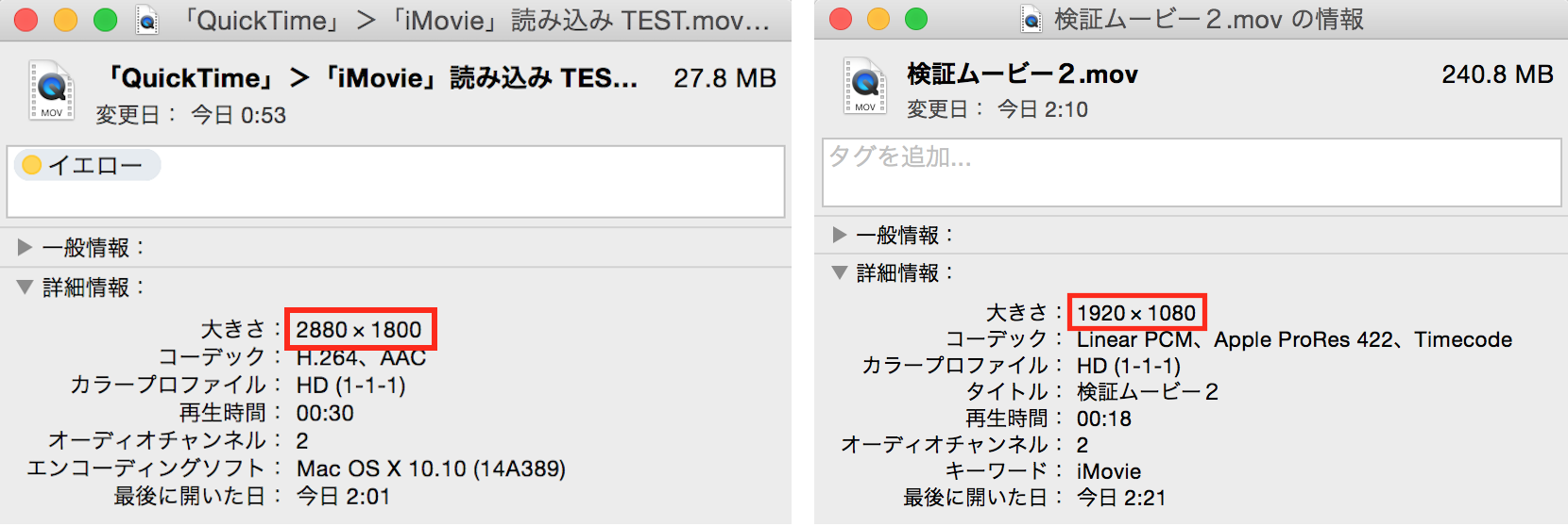 【 QuickTime Player で撮影 】          【 iMovie の最高品質で書き出し 】