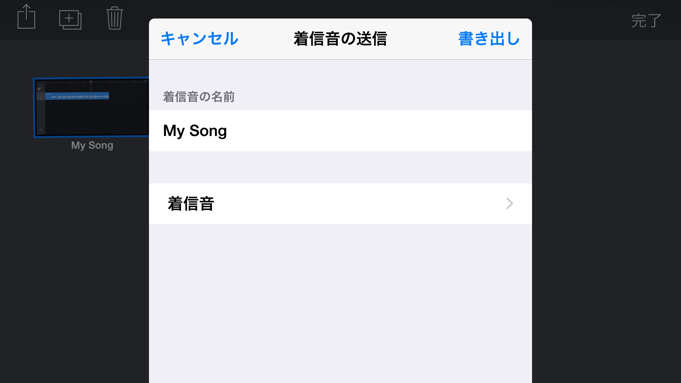 iPhoneにインストールされているGarageBandでMy Songsに保存した音源を選択し着信音に書き出したものをiPhone上から削除する方法が見つかりません。