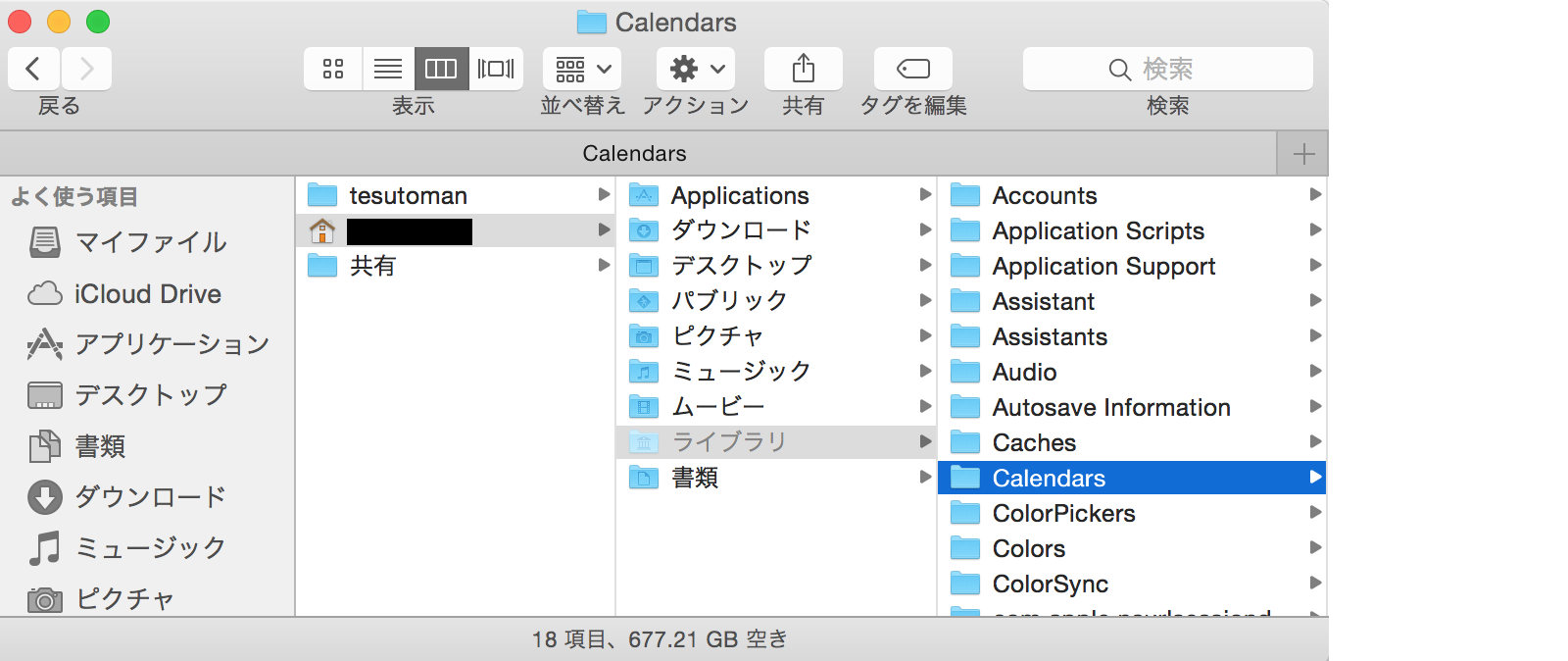要するに、やすどんさんが仰っているのは、下記画像の「Calendars」フォルダを移動させて下さいと言う事です。