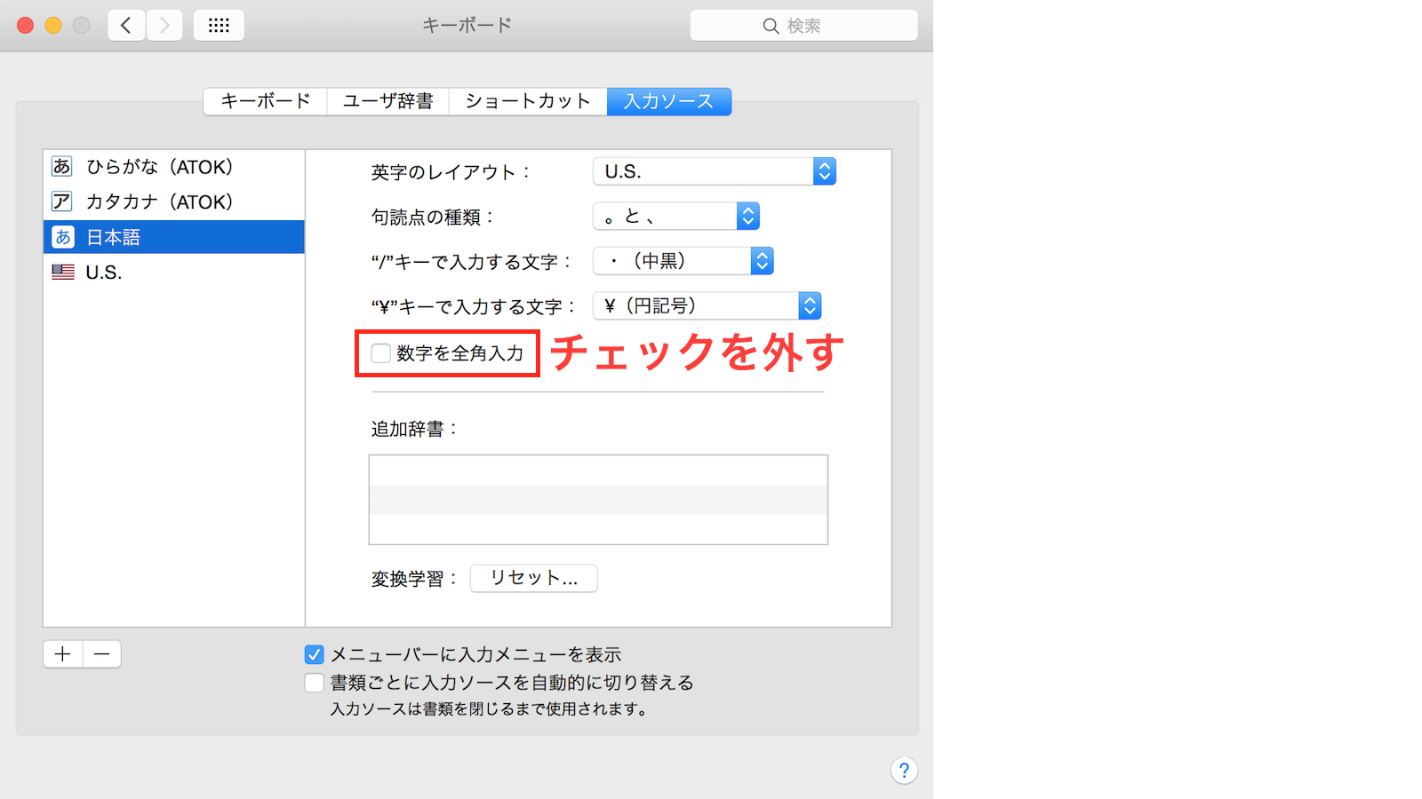 もしも、kerokero50 さんがお使いの「入力ソース」が「ATOK」である場合は、メニューバー右側(エクストラ