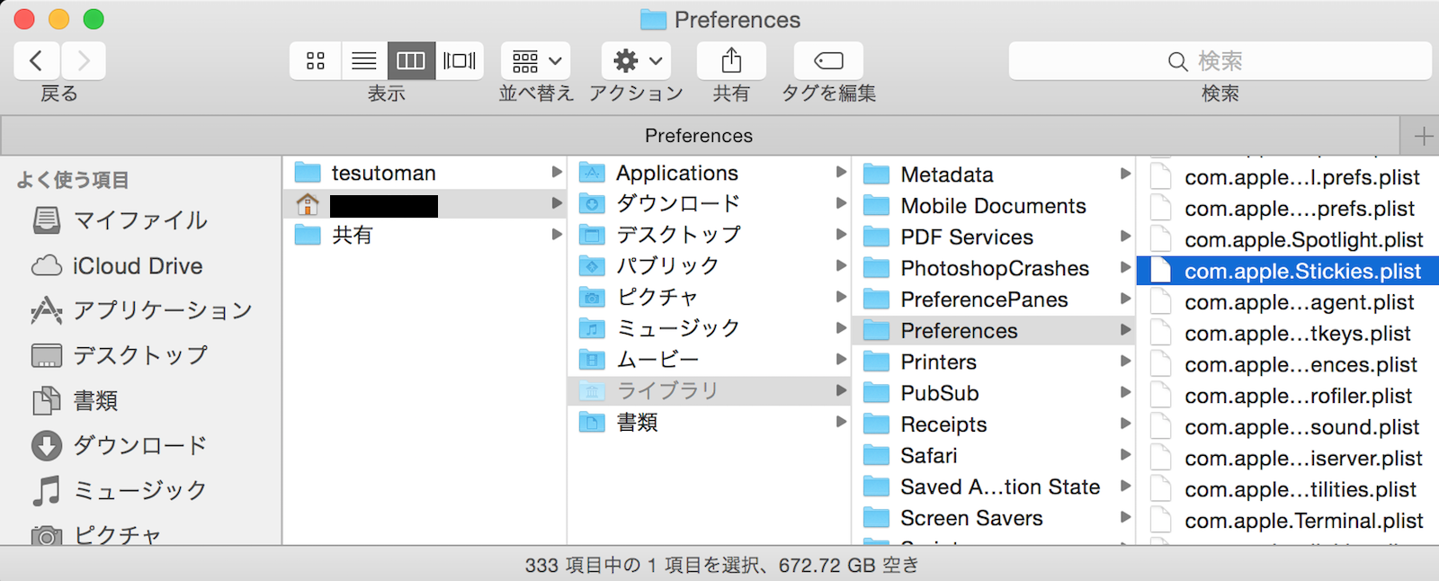 ユーザ/あなたのアカウント/ライブラリ/Preferences/com.apple.Stickies.plist
