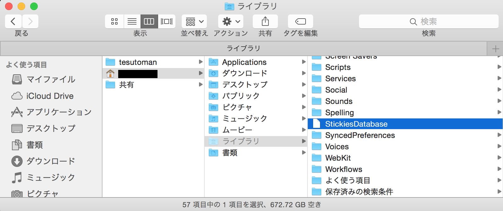 ユーザ/あなたのアカウント/ライブラリ/StickiesDatabase