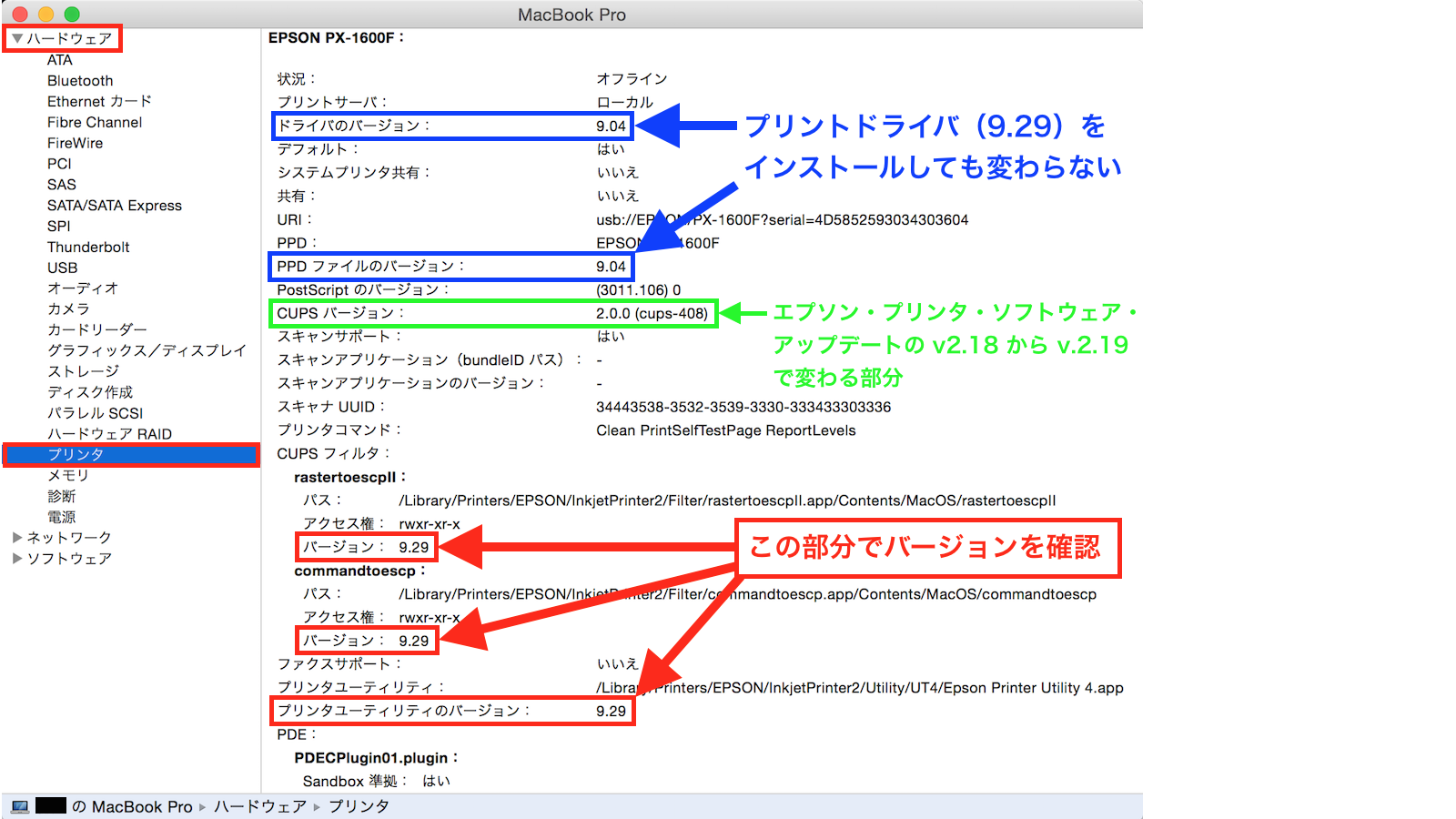 実は以前から EPSON の最新プリントドライバをインストールしても「ドライバのバージョン」が更新されない