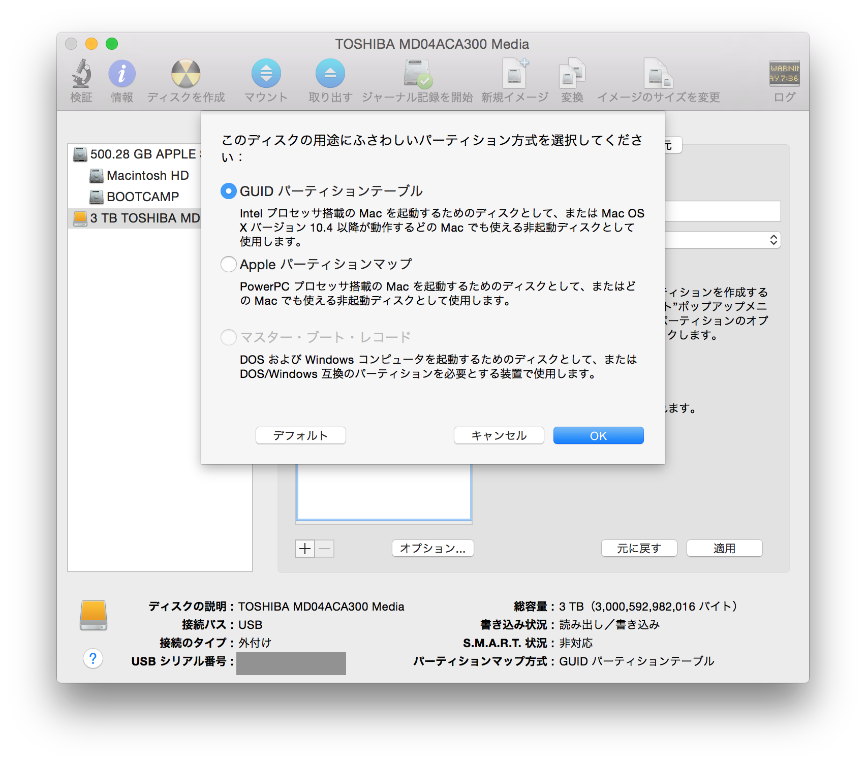 HDDをマスター・ブート・レコードでフォーマットできない